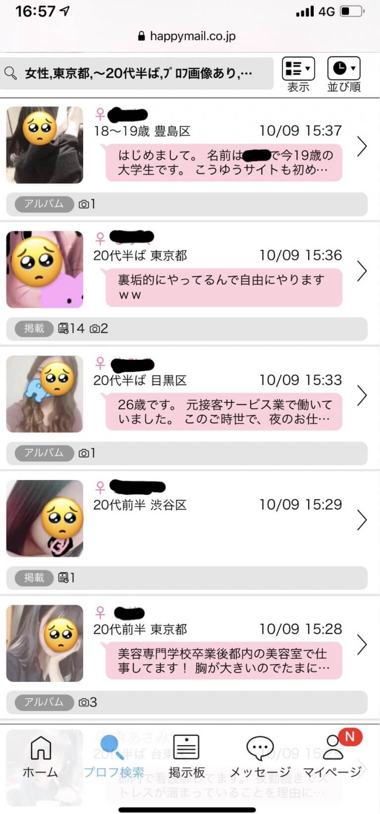 以下の写真は実際のメルパラの掲示板検索の画面です↓↓