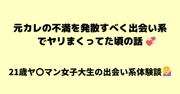 元カレの不満を発散すべく出会い系でヤリまくってた頃の体験談💖